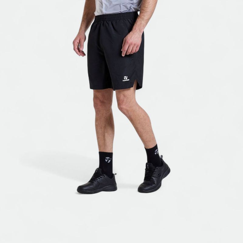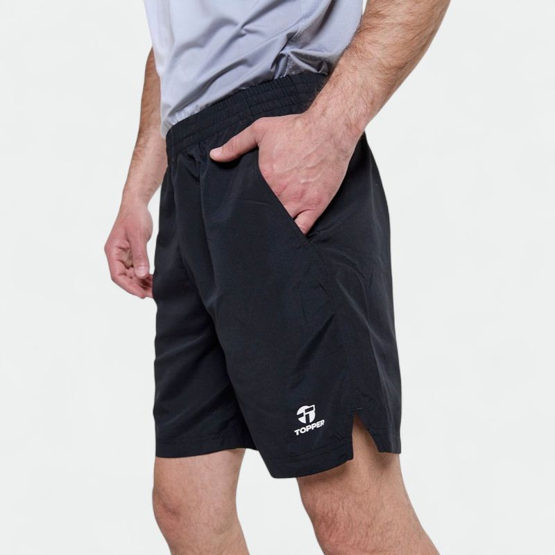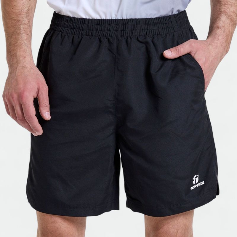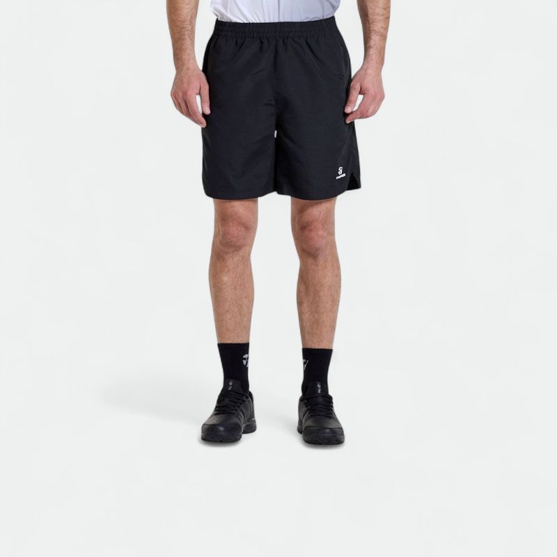 Bermuda básica con bolsillos y tajos laterales. logo en transfer a contratono. telas: microfibra de poliéster liviana - plano - 100% poliéster.