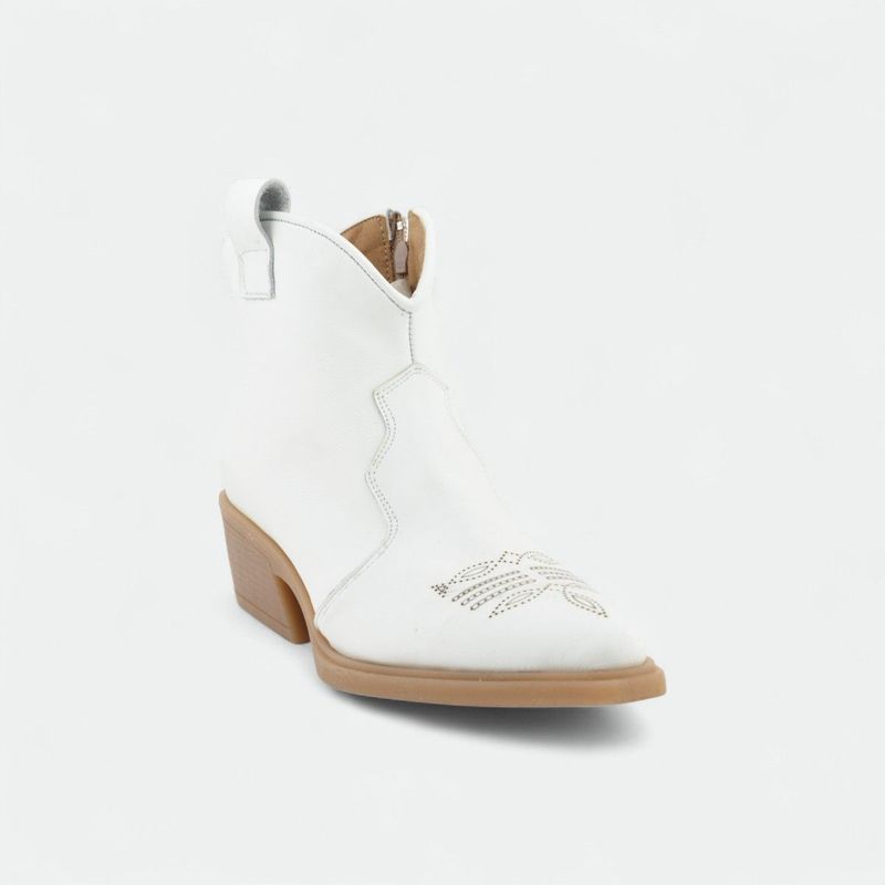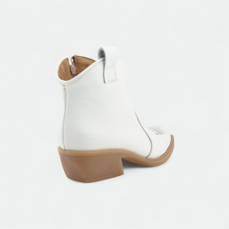 Las botinetas urbanas con estilo texano son una opción de moda audaz y única. Confeccionadas en cuero de alta calidad y destacando por sus recortes que evocan el espíritu del oeste. Un diseño con perforaciones que añaden un toque distintivo sin comprometer la durabilidad. Su cierre en el costado interno garantiza un ajuste seguro y cómodo. En el interior, el textil proporciona una sensación suave al usarlas. Completan el conjunto una suela de goma y un tacón de 5 cm, ofreciendo un equilibrio perfecto entre estilo y comodidad para enfrentar cualquier aventura urbana.