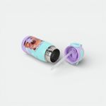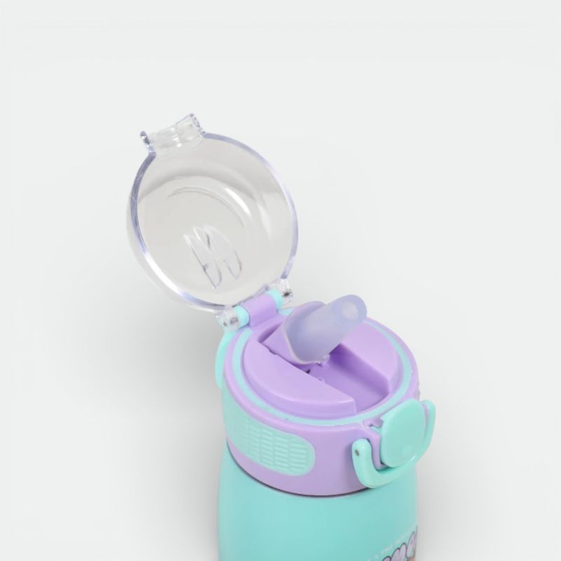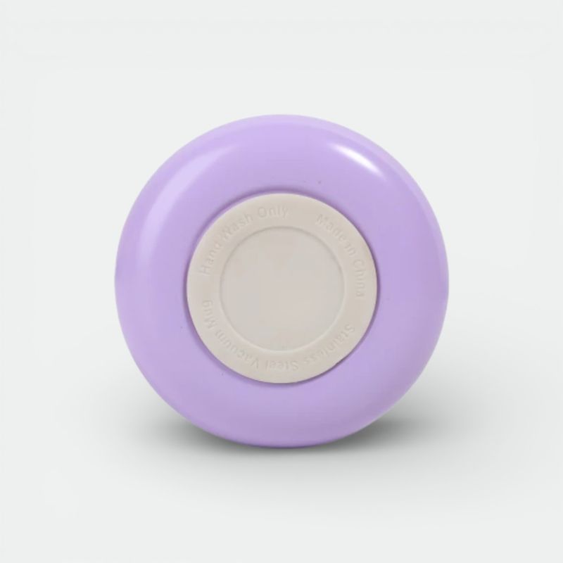Posee una tapa hermética de color lila con sistema de apertura tipo "flip" para prevenir derrames.