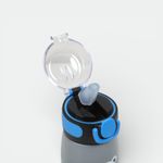 Posee una tapa hermética de color lila con sistema de apertura tipo "flip" para prevenir derrames.