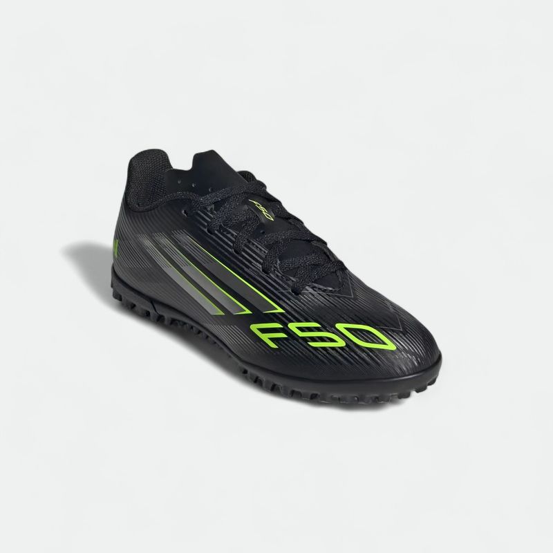 Encontrá tu velocidad para expresarte de verdad en el campo de juego. Sentí la adrenalina con los botines F50 de adidas, diseñados para la velocidad. Los botines Club para niños te brindan comodidad mientras te movés, gracias a su exterior sintético liviano y lengüeta perforada. Al darlos vuelta encontrarás una suela de caucho con taco bajo que favorece el juego rápido sobre césped artificial.