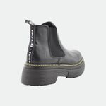 Un toque de brillo audaz para tus looks. Su diseño clásico con elásticos laterales garantiza un calce cómodo y práctico. El taco de 6 cm y la puntera de 3 cm te brindan una altura favorecedora con una estética moderna y urbana.