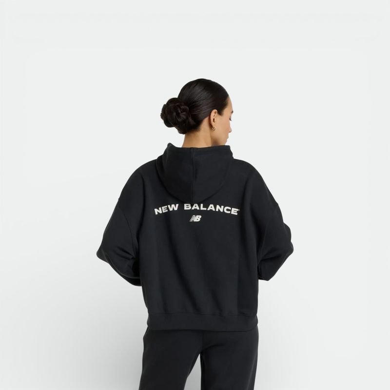 Presenta un estampado central de gran tamaño en el pecho con el logotipo "NB" en color negro.