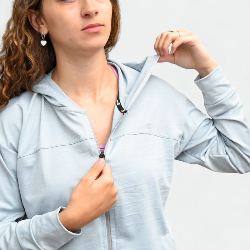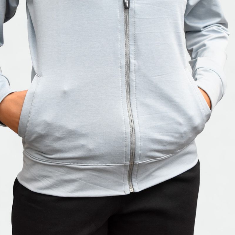 Cierre frontal completo y capucha ajustable para mayor practicidad.