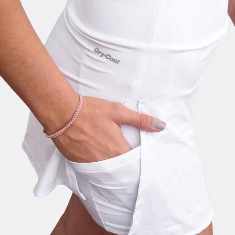 Pollera con cintura ancha, calza interna y tajo lateral profundo. Bolsillo interno porta-pelota. Isologo en transfer. Tela: Interlock con elastano - Punto - 89% Poliéster / 11% Elastano La tecnología Dry- Cool consiste en una gama de materiales de microfibras especiales que permiten eliminar el excedente de humedad. Gracias a esta tecnología, la prenda expulsa la humedad de la piel a la superficie exterior del tejido, donde se seca con rapidez, manteniendo regulada la temperatura del cuerpo.