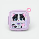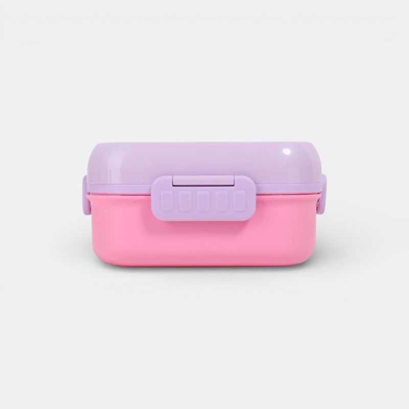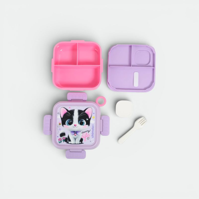 Viene equipada con un juego de cubiertos (tenedor y cuchara) de material plástico resistente y puntas redondeadas.