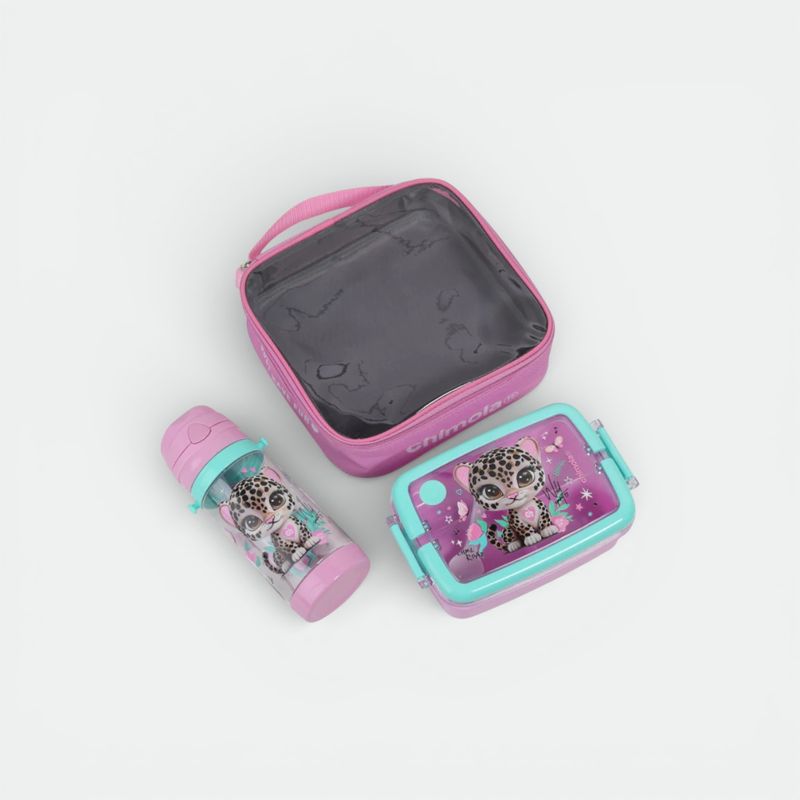 Botella de Hidratación: Incluye una botella combinada con tapa a rosca y pico, decorada con motivos de la colección.