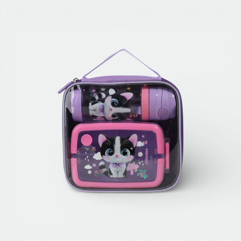Botella de Hidratación: Incluye una botella combinada con tapa a rosca y pico, decorada con motivos de la colección.