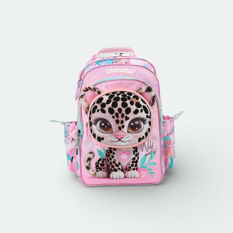 Marca: Chimola, con el logotipo de la marca aplicado sobre un bolsillo frontal de material holográfico.