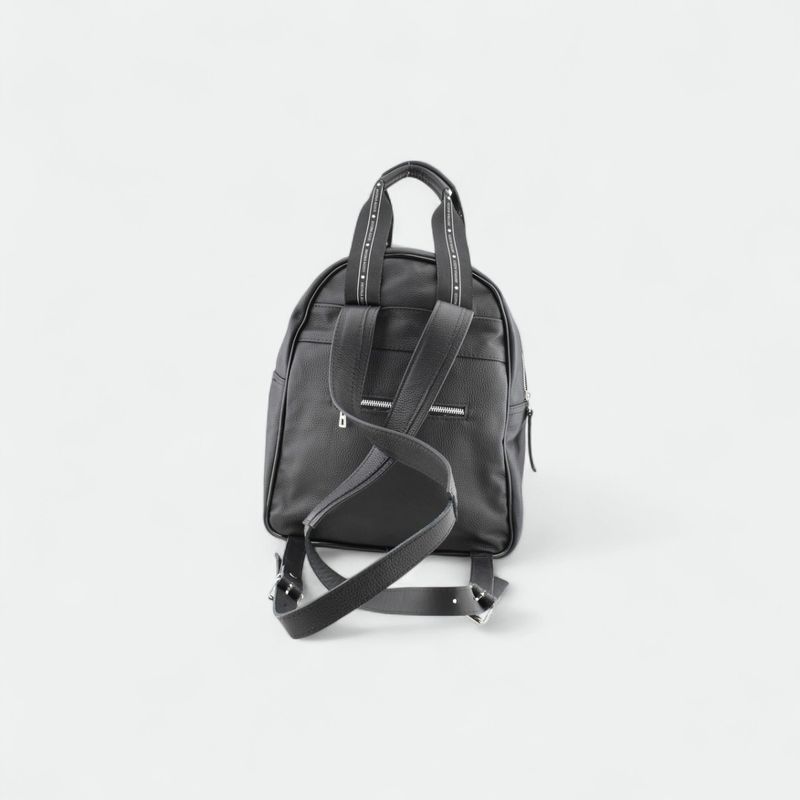 Cierre vertical en la espalda, ideal para guardar objetos de forma segura.