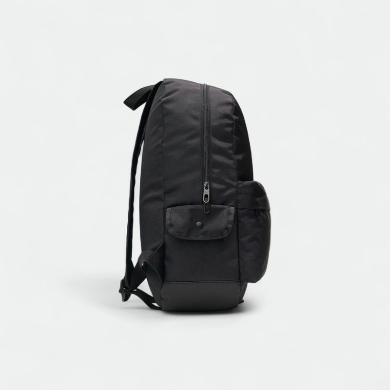 Posee un bolsillo lateral pequeño con solapa y broche, útil para guardar pertenencias menores de forma segura.