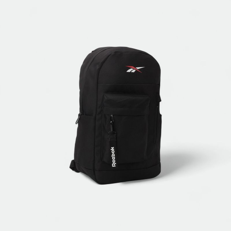 Detalle de Marca: Logotipo del Vector de Reebok bordado o estampado en el panel superior negro en colores blanco y rojo.