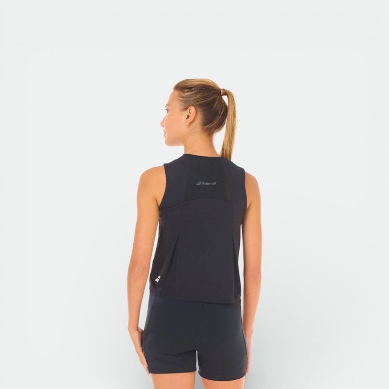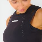Identidad de Marca: Presenta el nombre "Babolat" en el centro del pecho y el logotipo de las dos franjas en la parte inferior lateral.