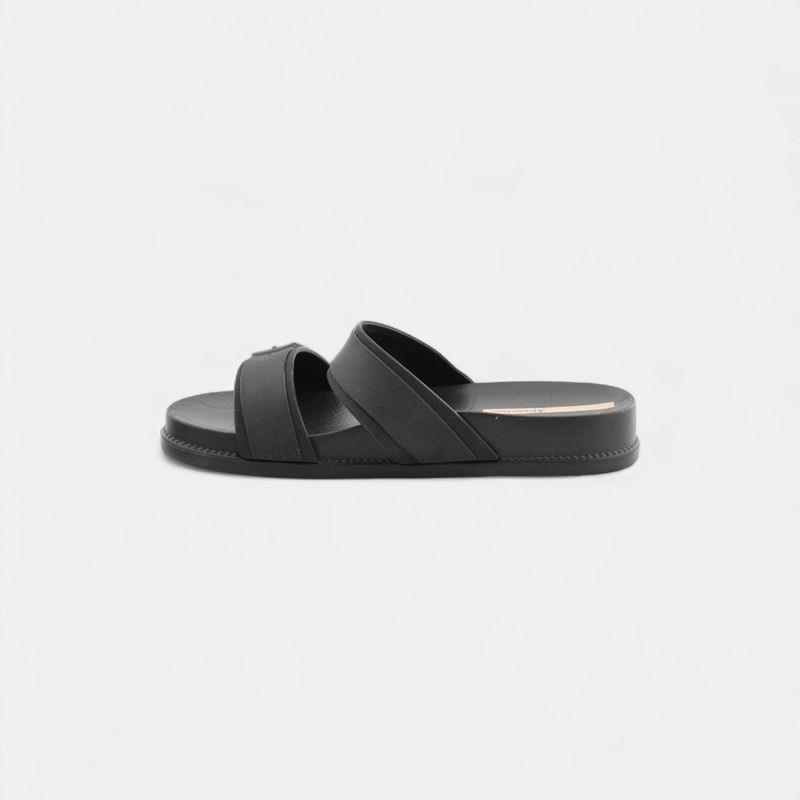 Estilo: Sandalia tipo ojota o "slide" con plataforma baja, de diseño moderno y minimalista.