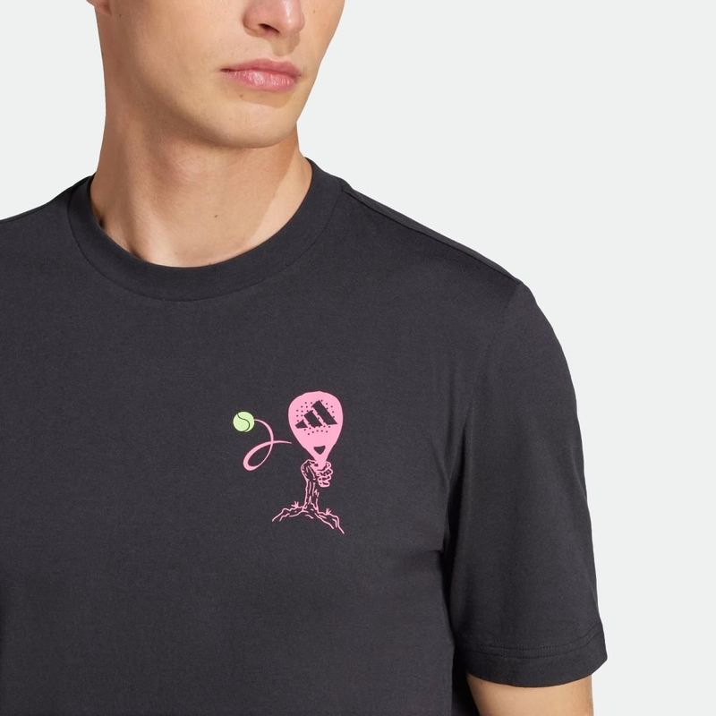 Demuestrá tu pasión por el pádel con esta remera adidas. Perfecta tanto dentro como fuera de la cancha, está confeccionada en un tejido de punto con mezcla de algodón muy cómodo y suave al tacto. El tejido CLIMACOOL repele el sudor para mantener tu cuerpo fresco y seco, y tu mente libre de distracciones. El llamativo estampado en la espalda te inyecta una dosis extra de motivación.