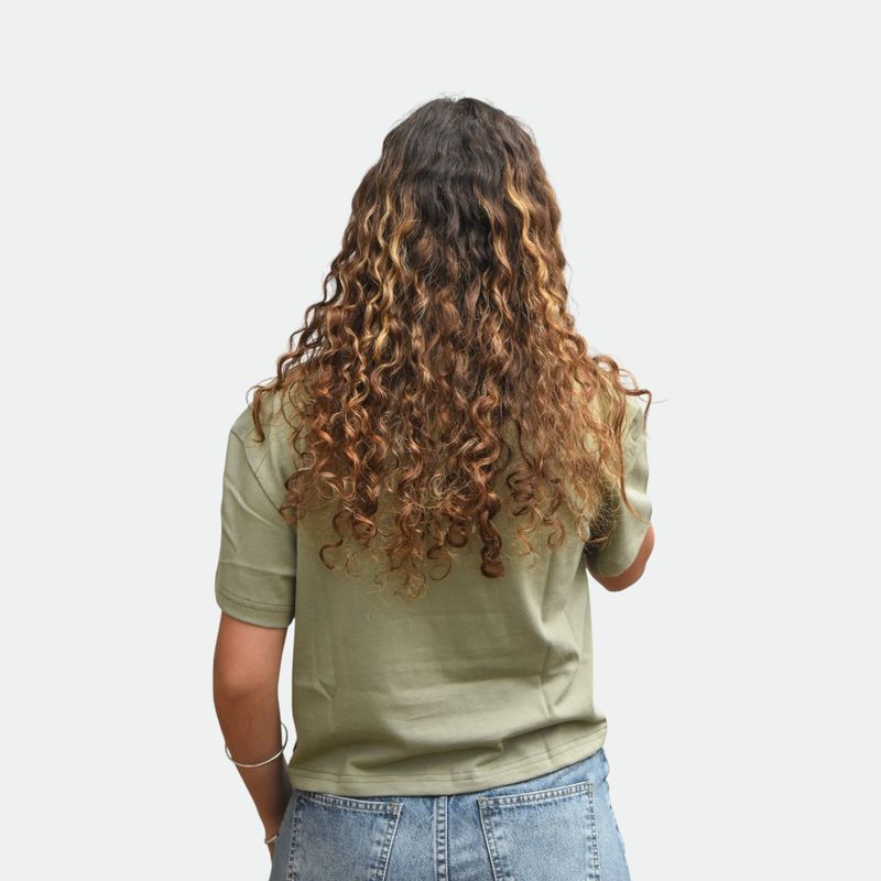 Cuello redondo con detalle en contraste que suma un toque distintivo.