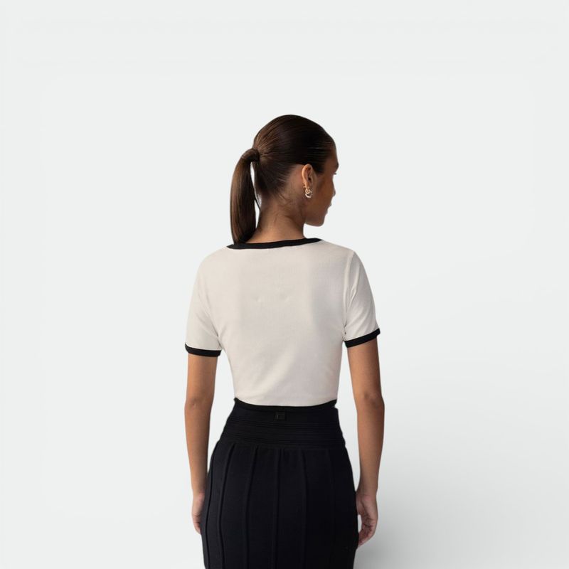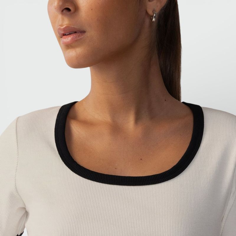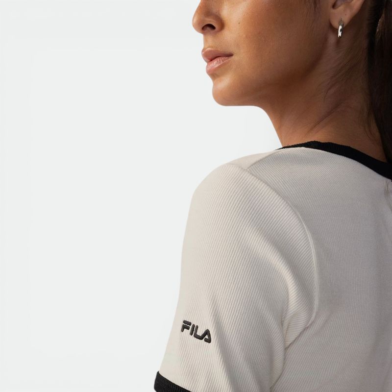 Remera femenina corta confeccionada con tejido de viscosa y elastano sostenible, derivado de una fuente renovable. El diseño de corte entallado se realza con el escote cuadrado y los ribetes en el dobladillo, las mangas y el escote, proporcionando un acabado refinado. La firma de la marca se resalta con el bordado FILA Linear en la manga, que ofrece un toque de exclusividad y estilo.