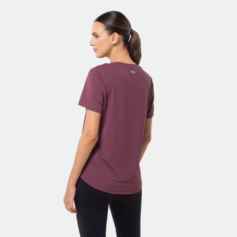 Remera manga corta de mujer, de calce REGULAR. Confeccionada en tejido de punto de poliamida y elastano, cuenta con tecnología FLOW, la cual proporciona un secado rápido manteniendo el cuerpo en la temperatura ideal para la práctica deportiva. Tiene escote en V e identificación de marca FILA letter en la espalda.