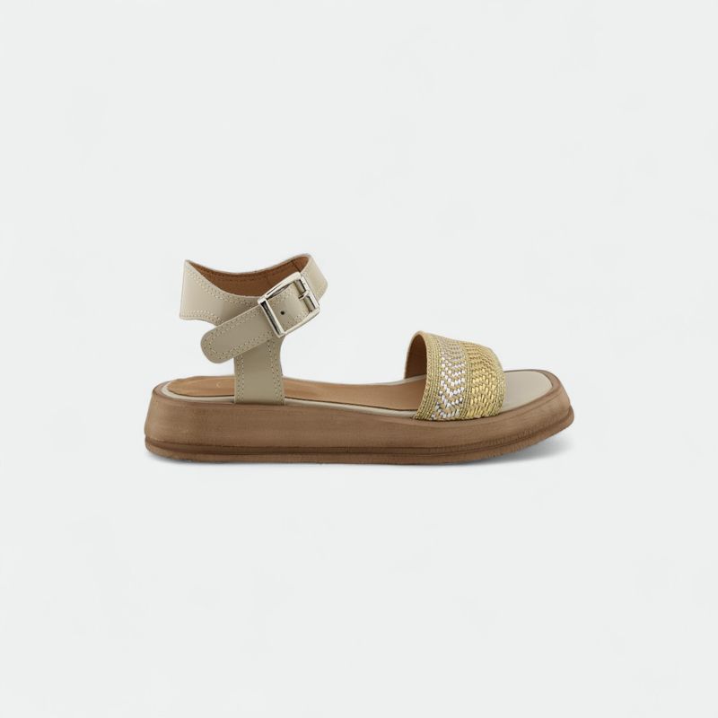 ?? Diseño moderno y casual con detalle tejido en tonos naturales.