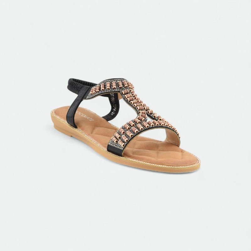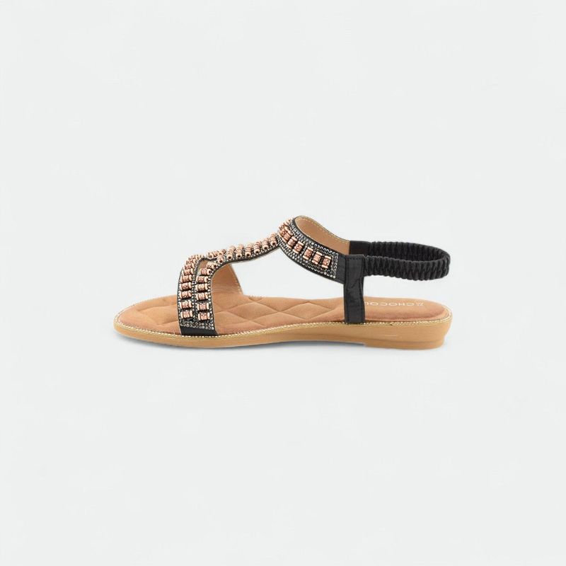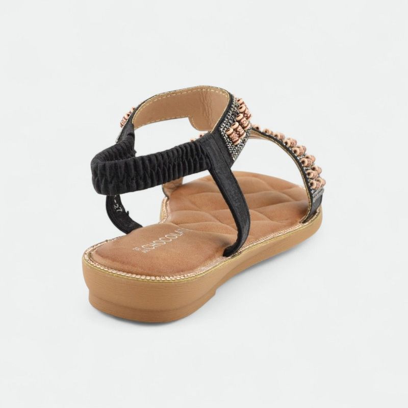 Sandalia baja con apliques y elástico mujer CHOCOLATE - NEGRO