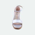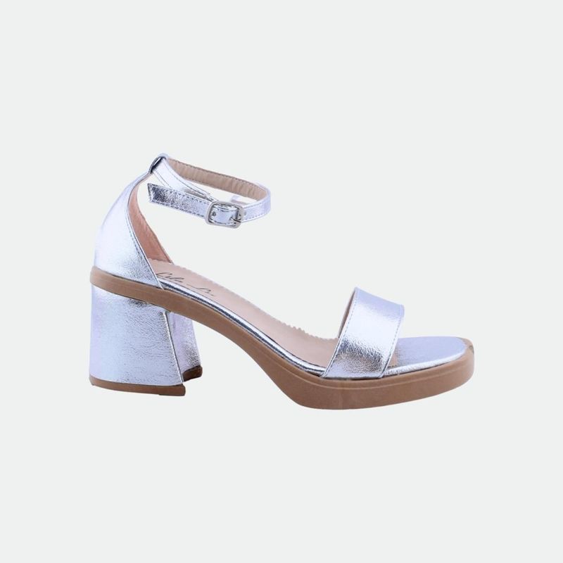 Sandalia clásica para vestir de cuero sintético con faja lisa y hebilla para ajustar.
