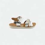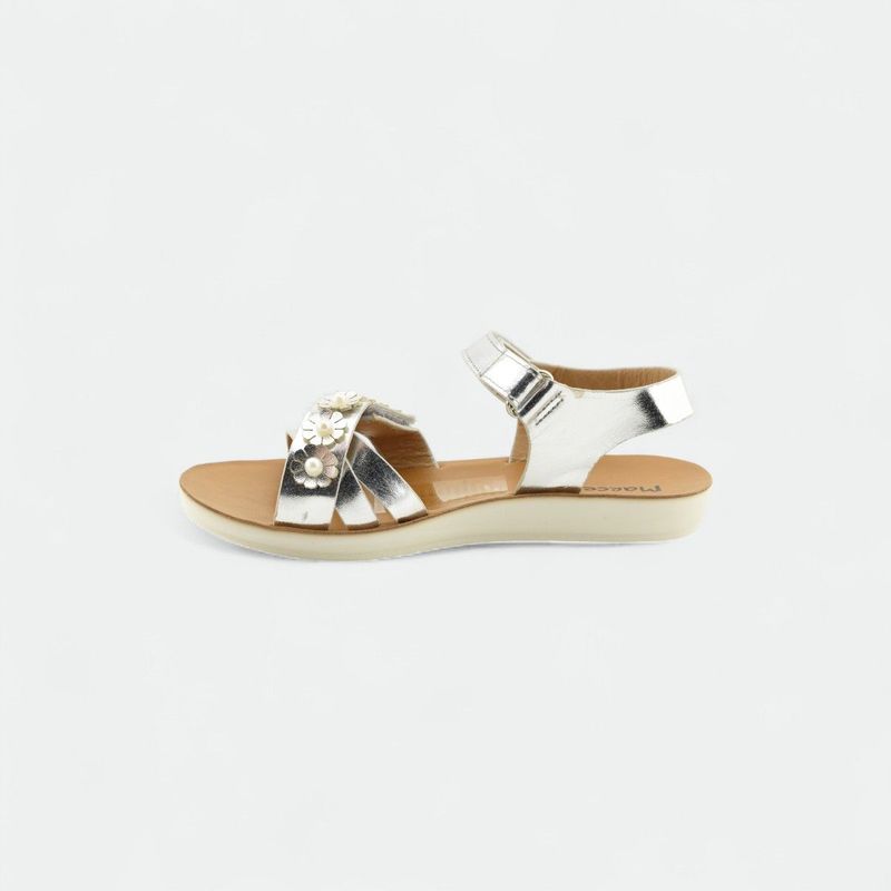 Cuenta con una plantilla de color marrón que contrasta con el plateado, y una suela exterior clara y ligera.