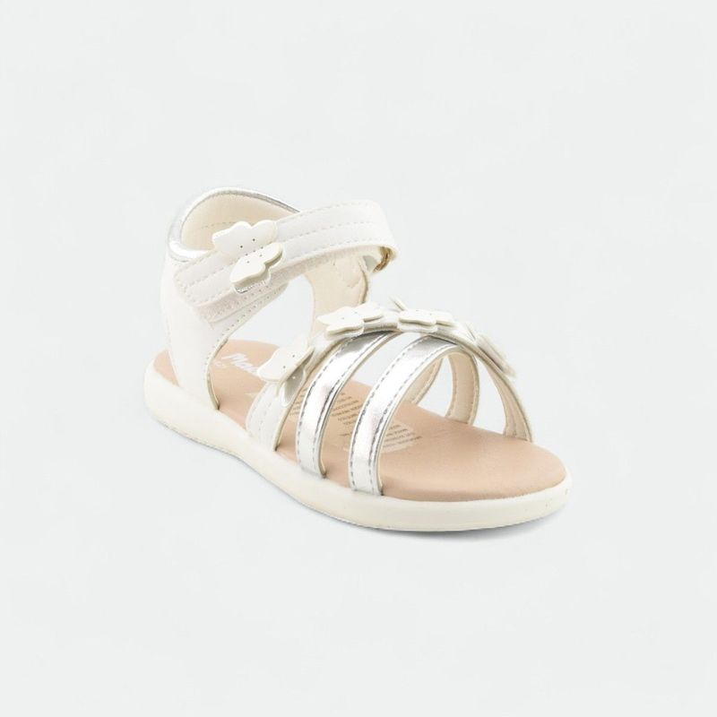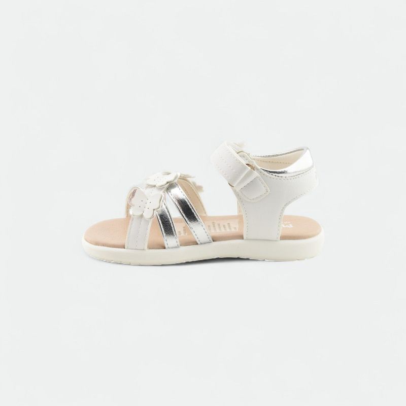 Sandalia con abrojo y aplique con mariposas niños MARCEL - BLANCO PLATA