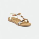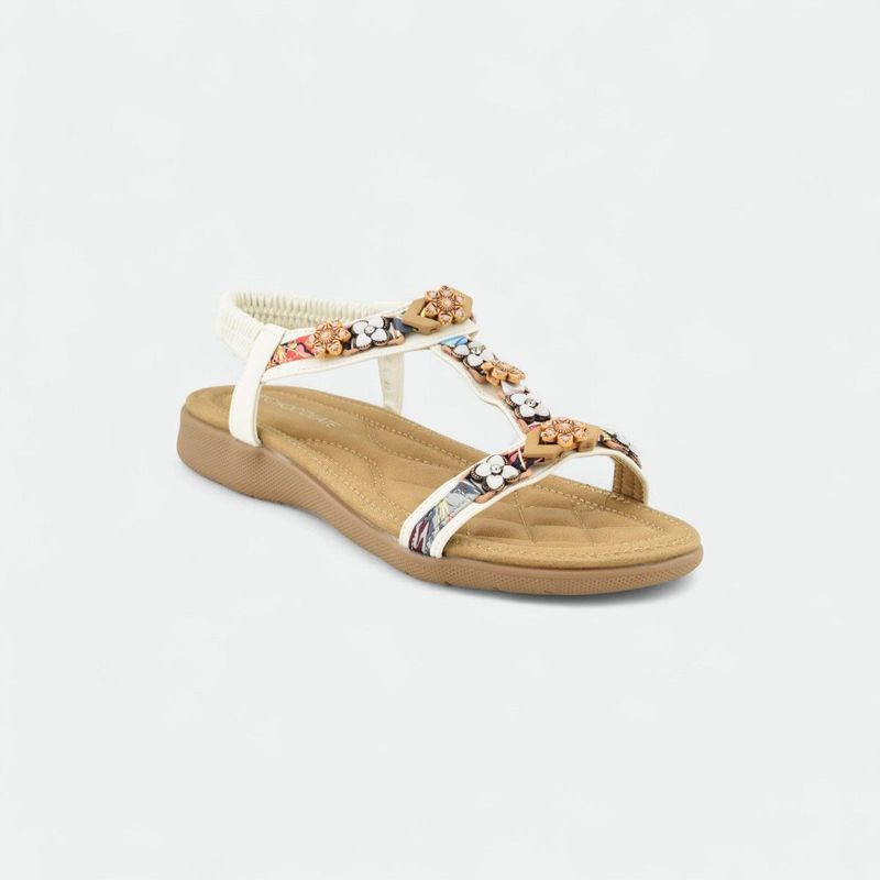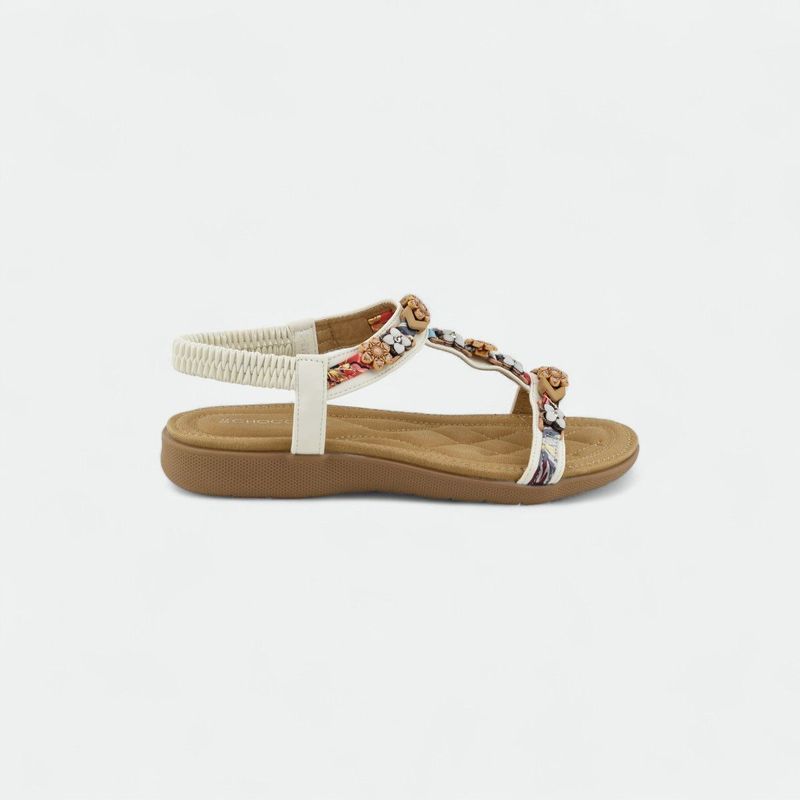Sandalia con apliques de flores y elástico trasero mujer CHOCOLATE - BLANCO