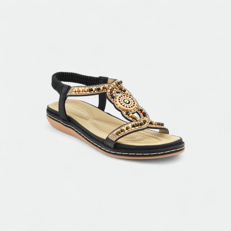 Sandalia con apliques de mostacillas y elástico trasero CHOCOLATE