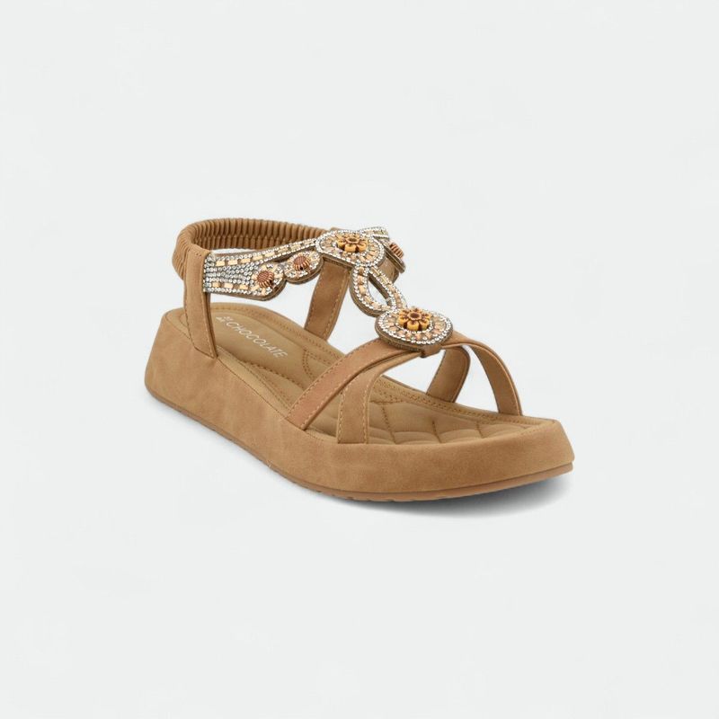 Sandalia con apliques y piedras mujer CHOCOLATE