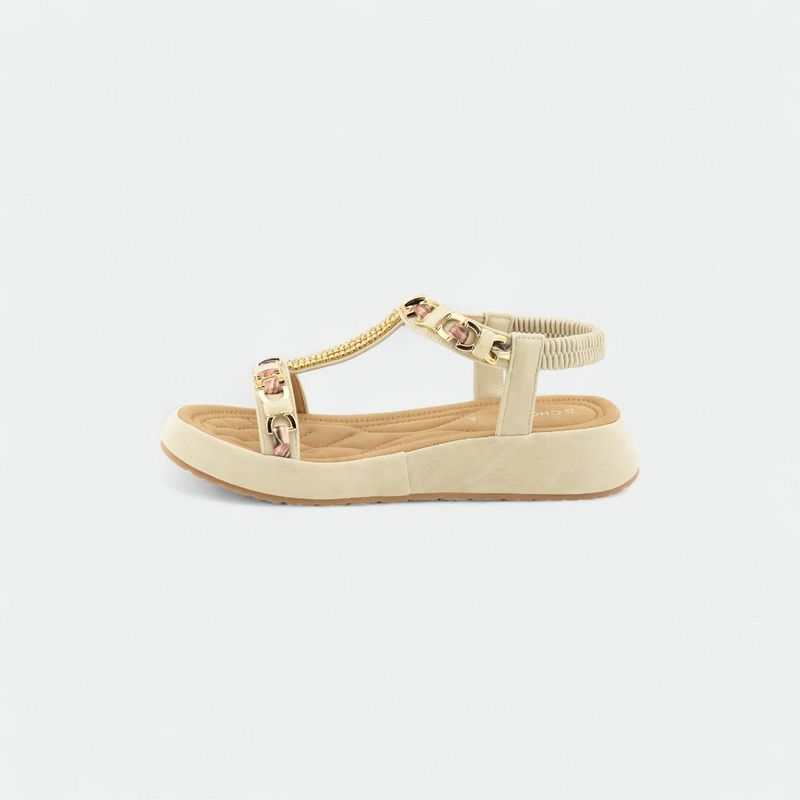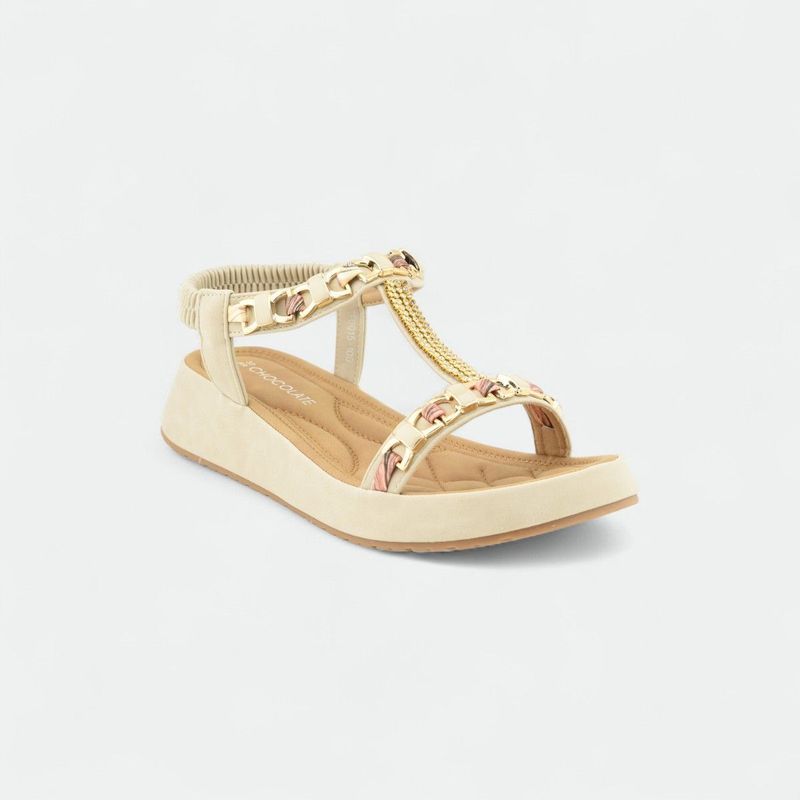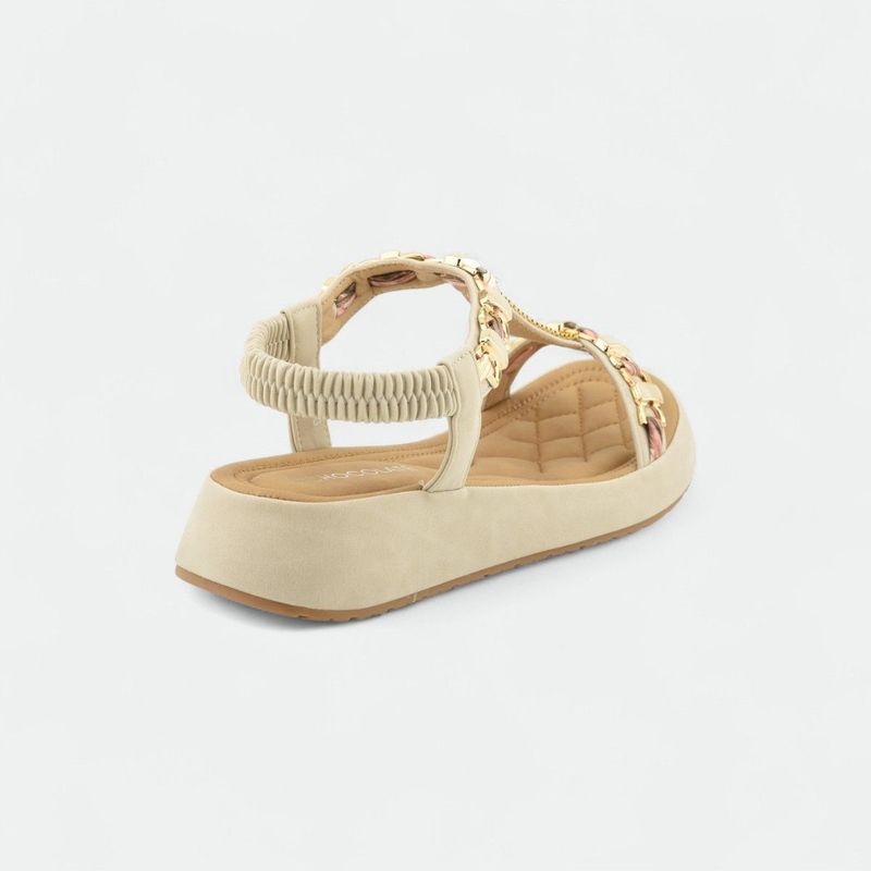 Sandalia con cadenas y plataforma baja mujer CHOCOLATE - BEIGE