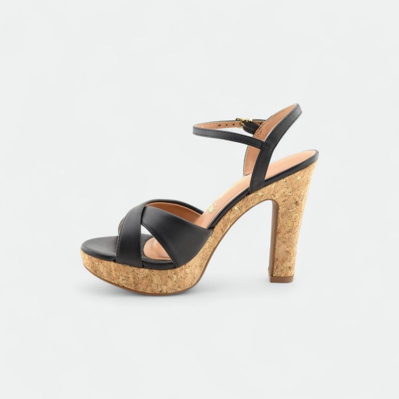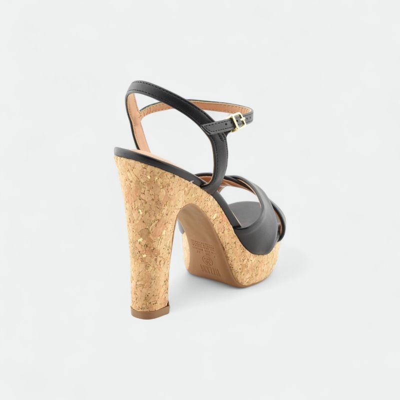 Sandalia con plataforma de corcho y taco ancho VIZZANO - NEGRO NATURAL DORADO TELA MINIGLIT