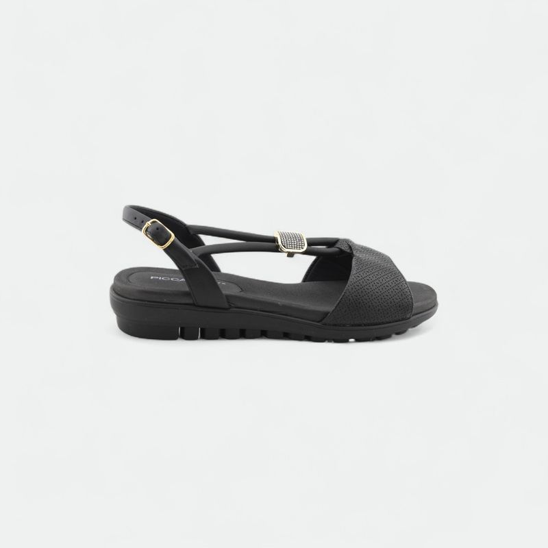 Diseño cruzado con detalle metálico frontal, que aporta un toque elegante y moderno.