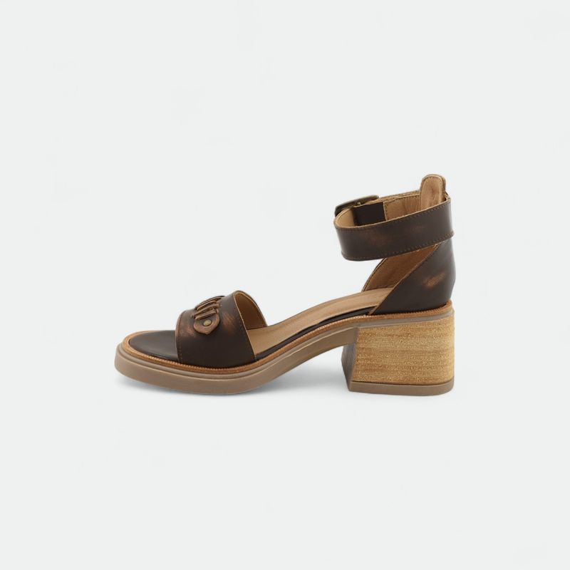 Sandalia de cuero con taco mujer PREGO - VINTAGE CARAMELO