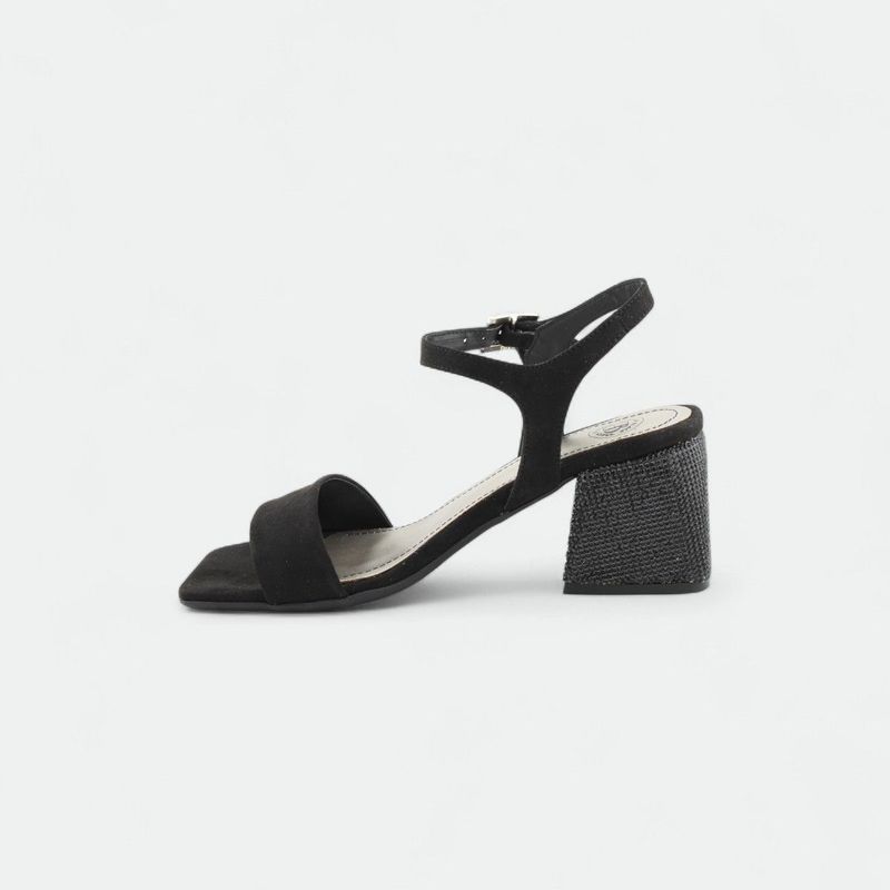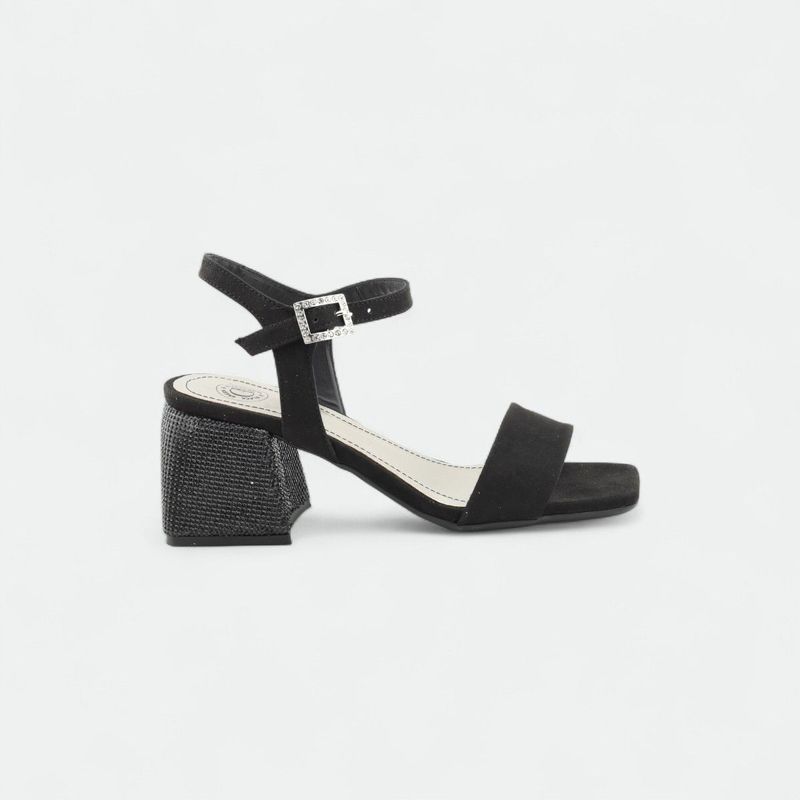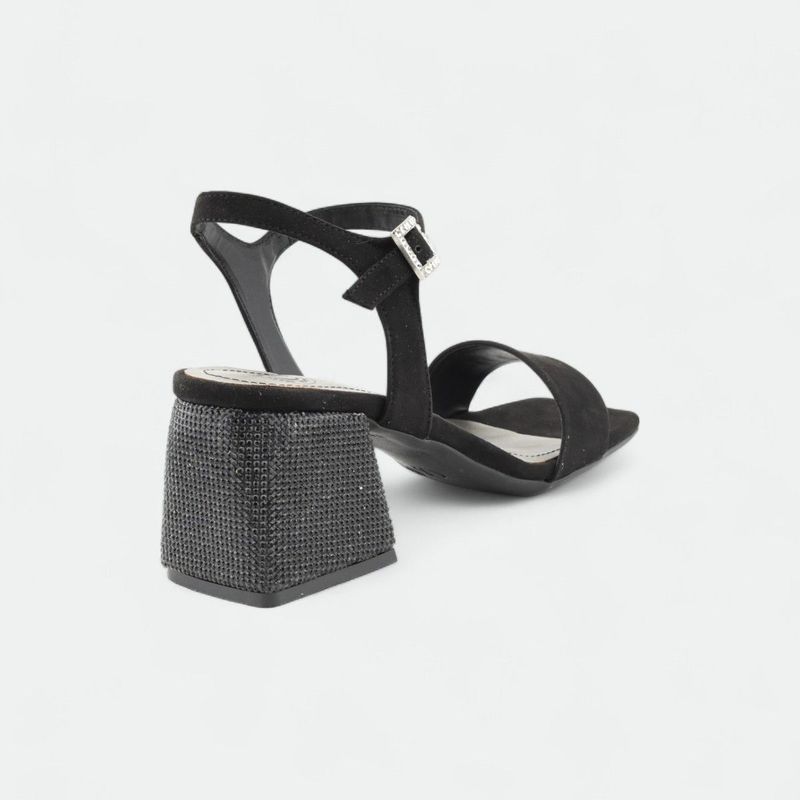 Base del taco con aplique de piedras brillantes, ideal para eventos.