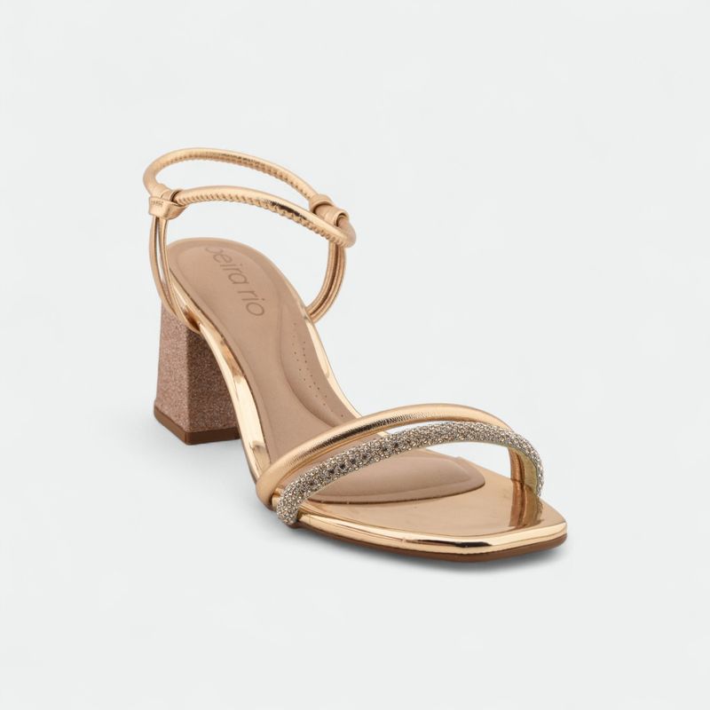 Estas sandalias con tacón cuadrado y tira en el tobillo son el complemento perfecto para cualquier outfit. Con una altura de taco de 7.5 cm, ofrecen comodidad y estilo, ideales para una noche de fiesta o una salida casual. ¡Dale un toque brillante a tu look!
