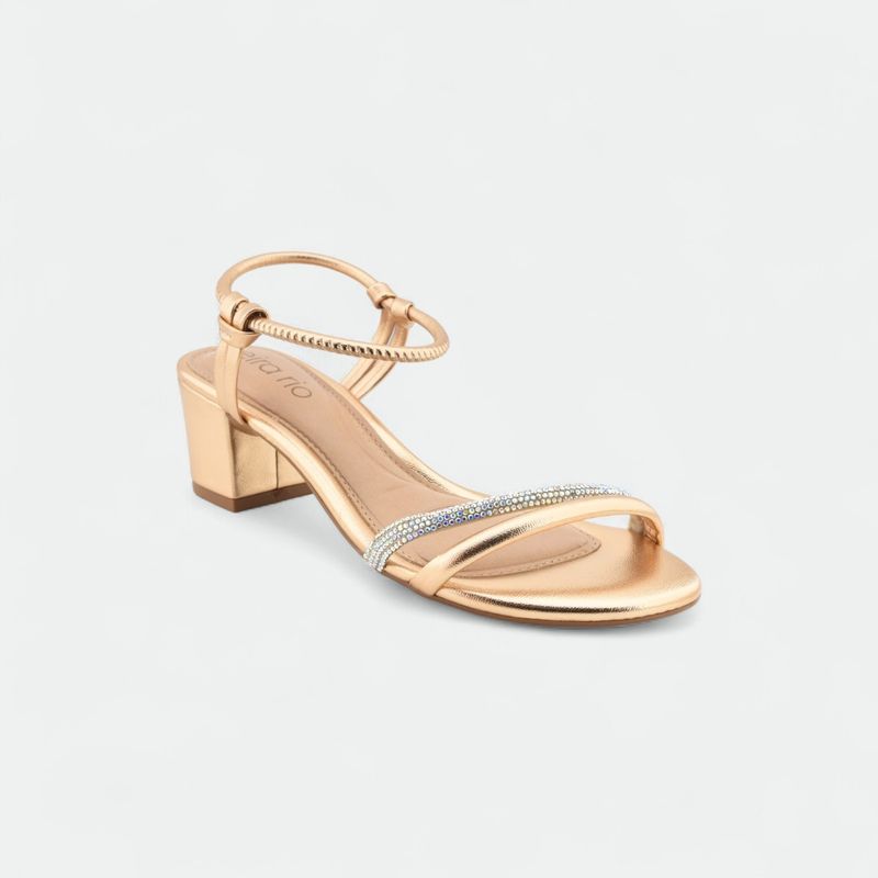 Sandalia de fiesta mujer taco bajo BEIRA RIO-ORO ROSADO MET STRASS