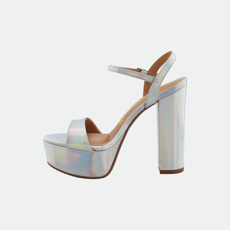 Estas elegantes sandalias de tacón alto para mujer presentan tiras holográficas que capturan la luz de manera deslumbrante, añadiendo un toque moderno a cualquier atuendo. Con una altura de taco de 13.5 cm y una plataforma de 4 cm, ofrecen un equilibrio perfecto entre estilo y comodidad, ideales para ocasiones especiales o salidas nocturnas.