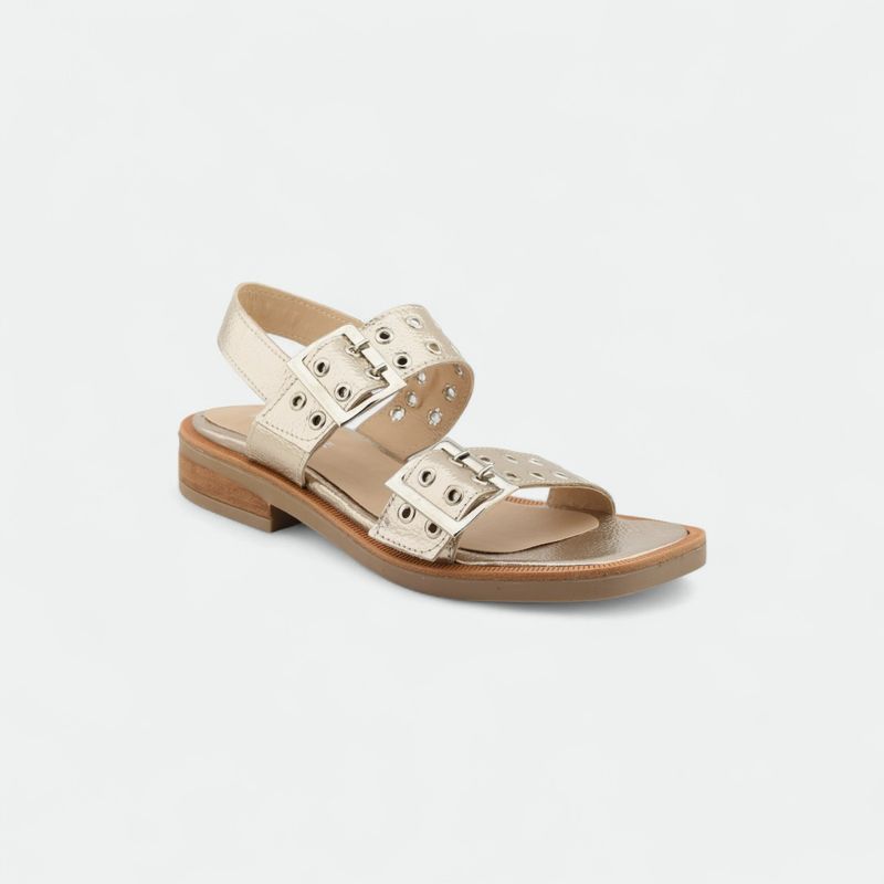 Sandalia doble hebilla con taco bajo TOKYO - PLATINO