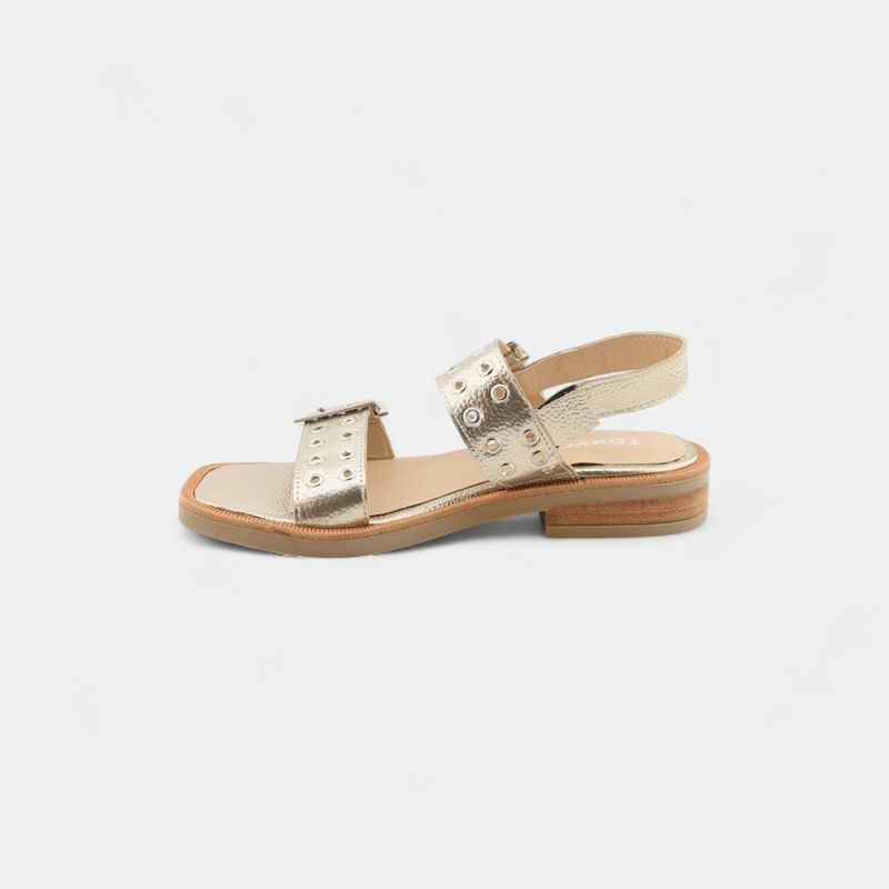 Sandalia doble hebilla con taco bajo TOKYO-PLATINO