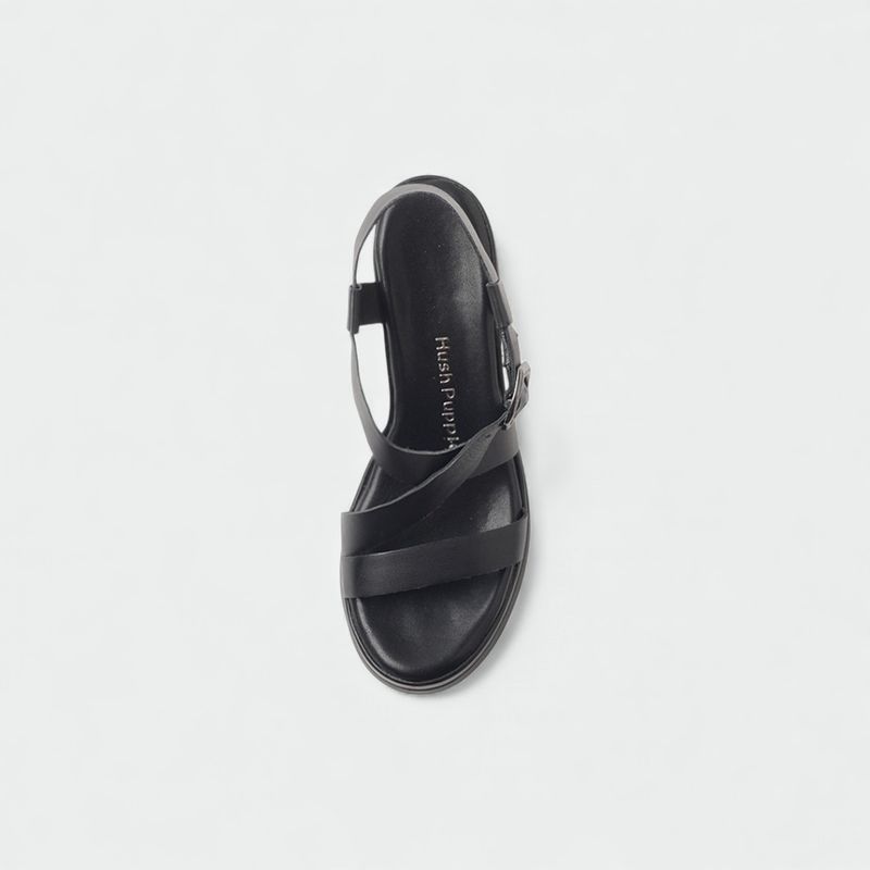 La Sandalia Hush Puppies Isabel está confeccionada en cuero con diseño de tiras cruzadas en el empeine y pulsera con aplique de hebilla metálica grabada con la marca. Incorpora plantilla forrada con identificación Hush Puppies que asegura comodidad en cada uso. Su fondo de material sintético presenta plataforma y taco con efecto madera, aportando un estilo moderno y versátil. La altura total del fondo completa el diseño, brindando estabilidad y confort para el uso diario.