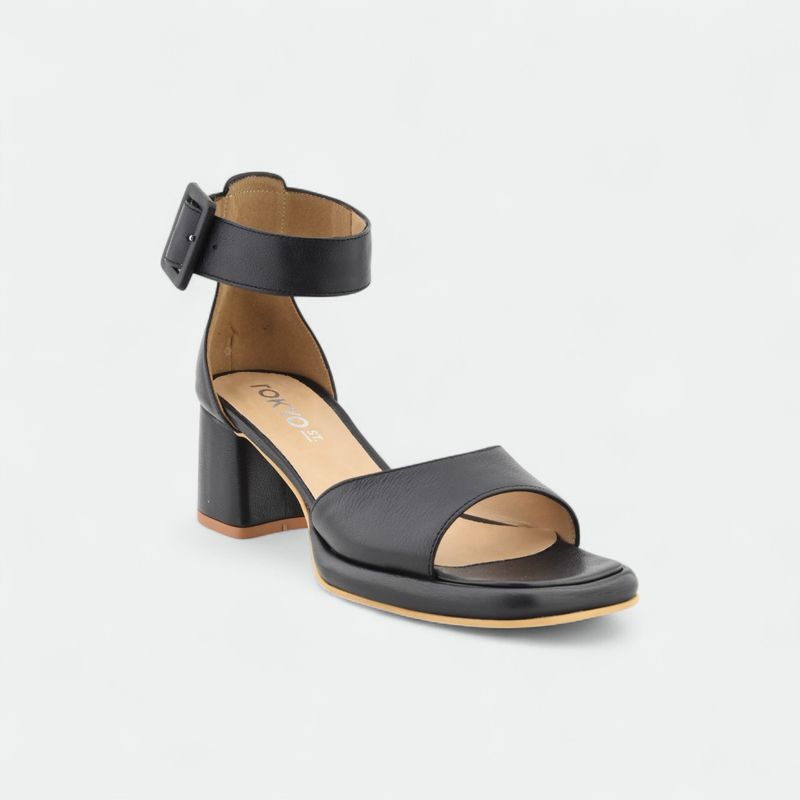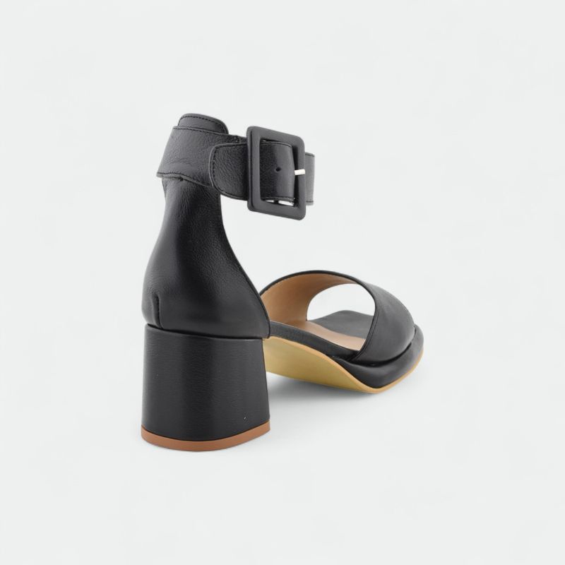 Talonera cerrada con correa ancha y hebilla regulable en el tobillo