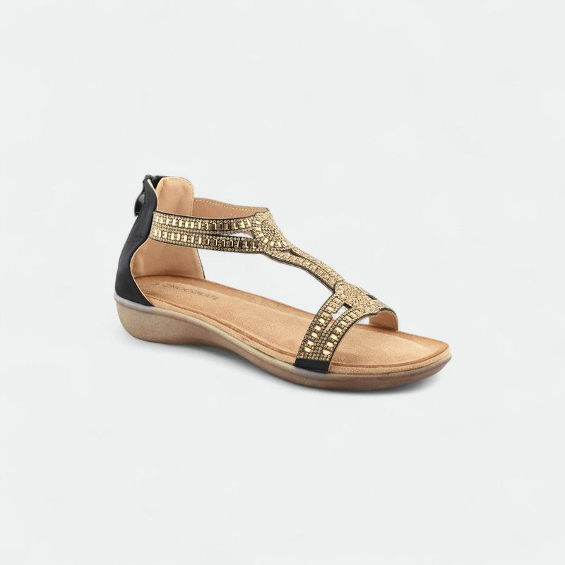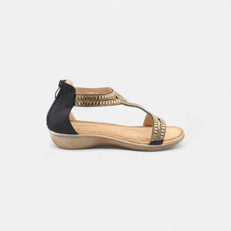 Sandalia mujer con brillos y plataforma baja CHOCOLATE - NEGRO