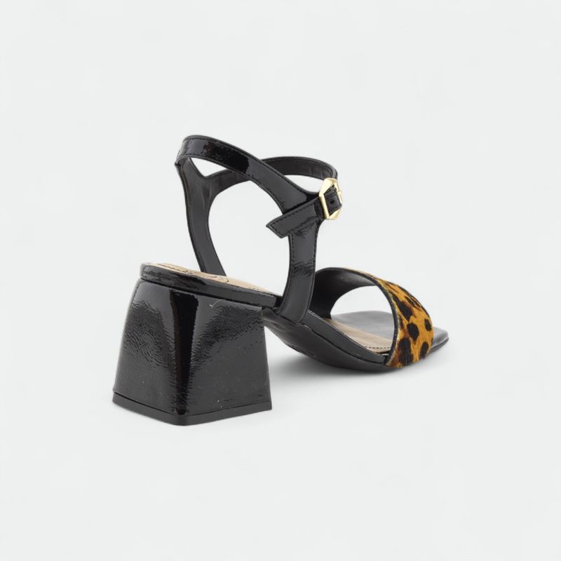 La sandalia de tacón bloque, confeccionada en cuero, combina elegancia y comodidad. Con una altura de taco de 7 cm, es ideal para ocasiones formales y casuales, ofreciendo un soporte óptimo sin sacrificar el estilo. Su diseño atemporal la convierte en un complemento versátil para cualquier guardarropa.