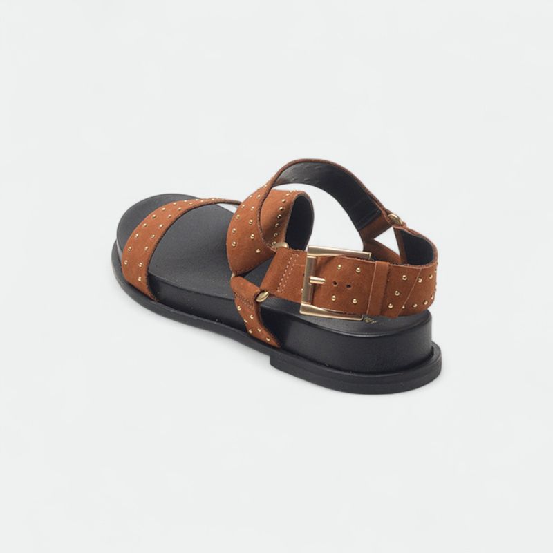 La Sandalia Hush Puppies Samson está confeccionada en cuero con diseño de múltiples tiras adornadas con pequeñas tachas circulares metálicas y pulsera con aplique de hebilla que asegura un calce firme. Incorpora plantilla forrada con la identificación Hush Puppies en alto relieve y fondo de goma antideslizante que aporta estabilidad. La altura total del suelín es de 1 cm.