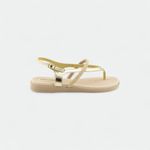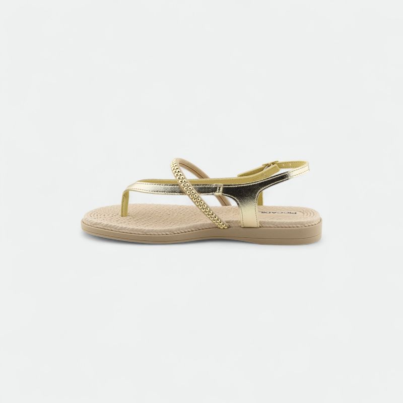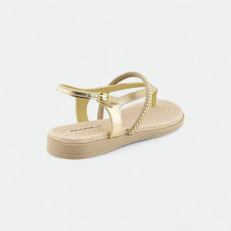 Detalle de apliques dorados en la capellada que aportan elegancia