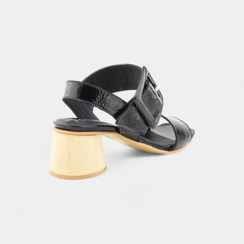 Elegante y versátil, esta sandalia de cuero auténtico se destaca por su diseño minimalista con una maxi hebilla que aporta un toque moderno y sofisticado. Su taco ancho de 6 cm brinda comodidad y estabilidad, ideal para acompañarte tanto en looks de día como de noche. Un modelo atemporal que combina estilo y confort en cada paso.