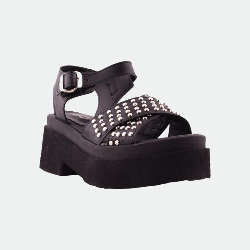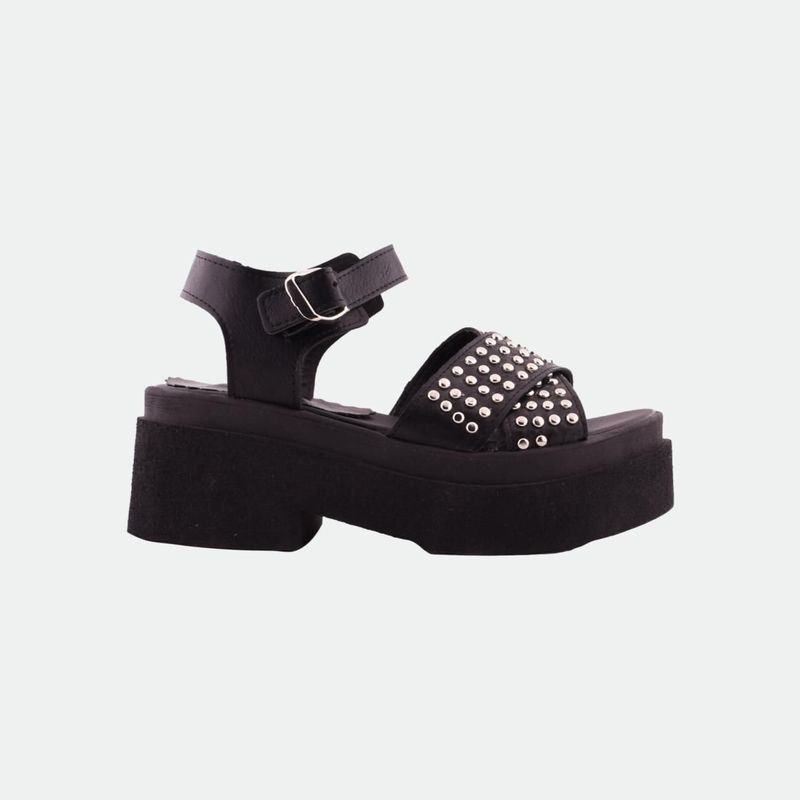 Sandalia de material sintético de alta calidad tiras cruzadas y tachas en capellada.