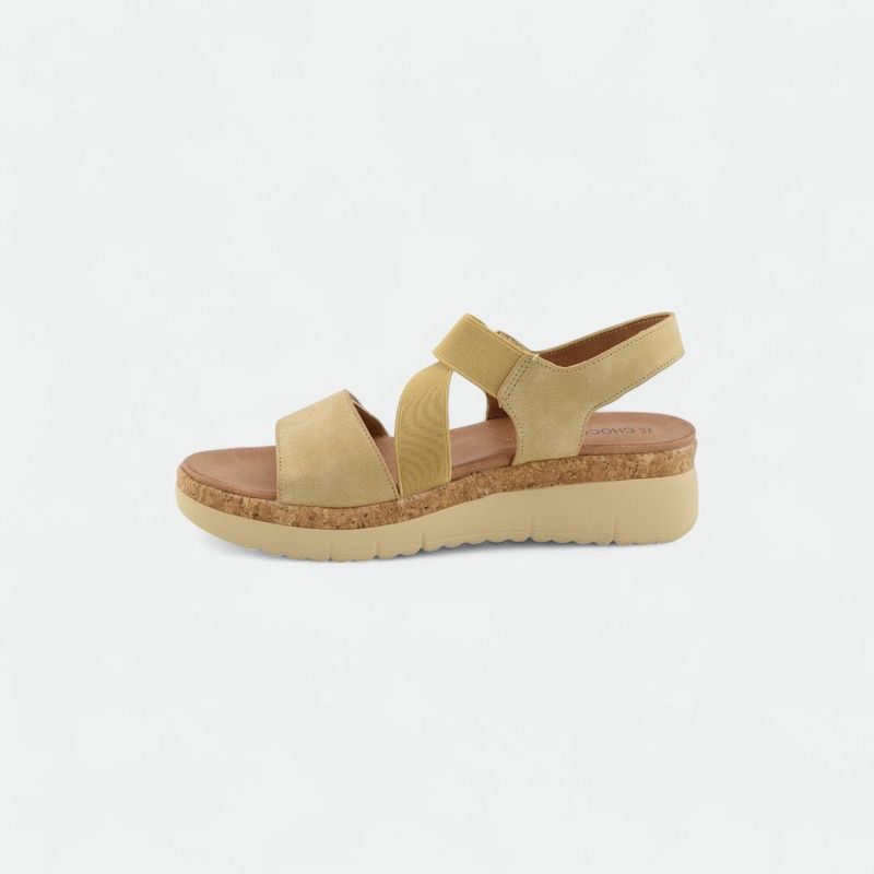 Sandalia urbana con plataforma y elástico mujer CHOCOLATE - BEIGE