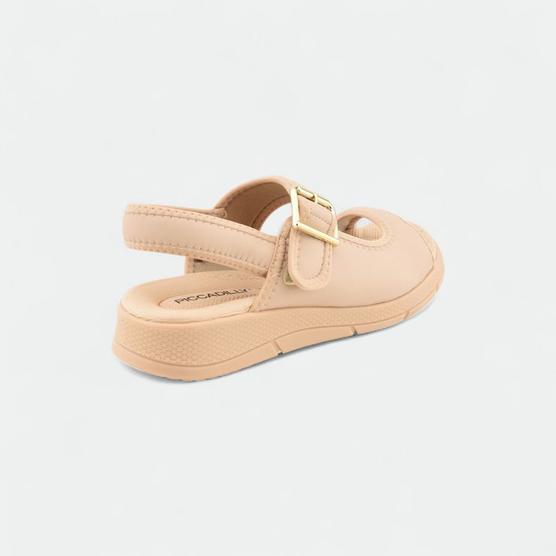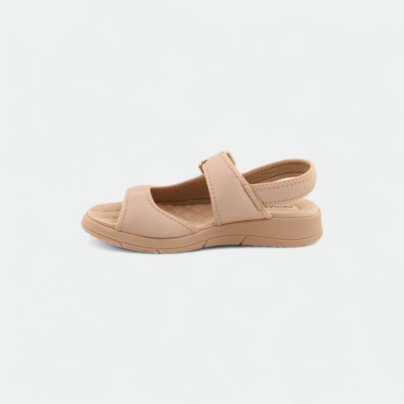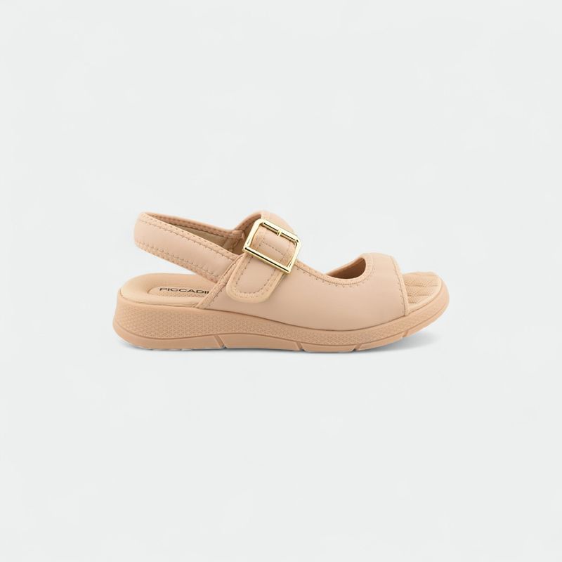 Diseño con tiras anchas y hebilla metálica dorada decorativa y funcional